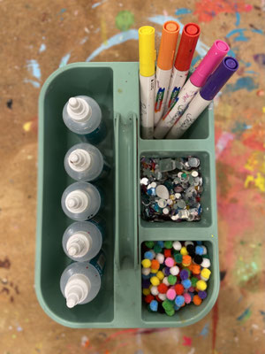 Es wird gemalt, gebastelt, modelliert und experimentiert mit den verschiedensten Materialien. In der Pause haben die