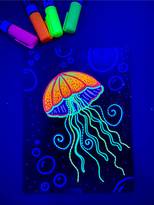 ab und malen ein knalliges Neon-Quallenbild (siehe unten). Der Moment, in dem eure Qualle unter der UV-Lampe plötzlich aufleuchtet, ist garantiert